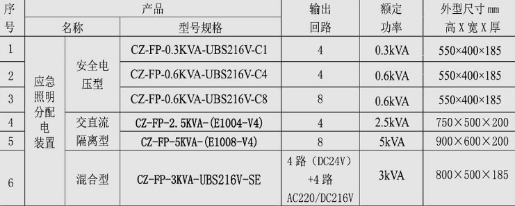 應急疏散CZ-FP-0.3KVA-DC24V-K4-B分配電裝置相關型號